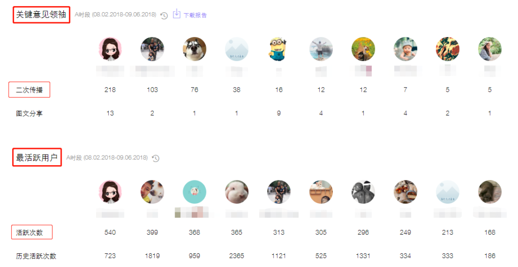 此部分数据针对用户粘度做了一个总的脚注。粉丝交互新增次数、平均交互次数、月活跃用户及月活用户率,一目了然。